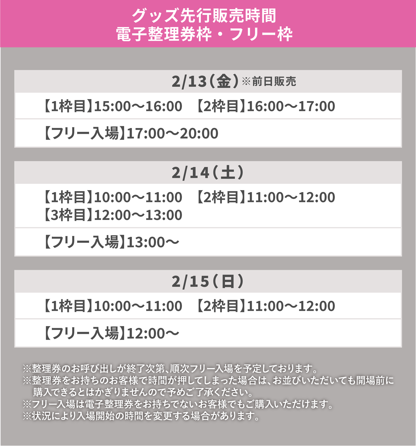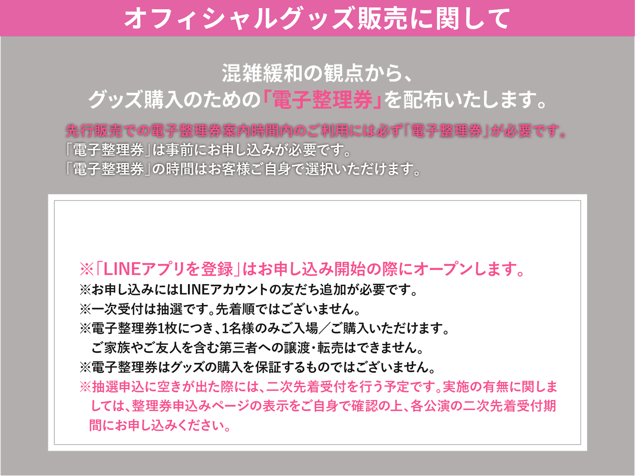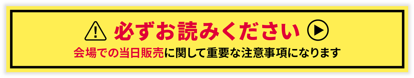 - ●待機列ではスタッフの指示に従ってください。ルール違反やまわりの迷惑になる行為があった場合は、販売をお断りさせて頂く場合がございます。