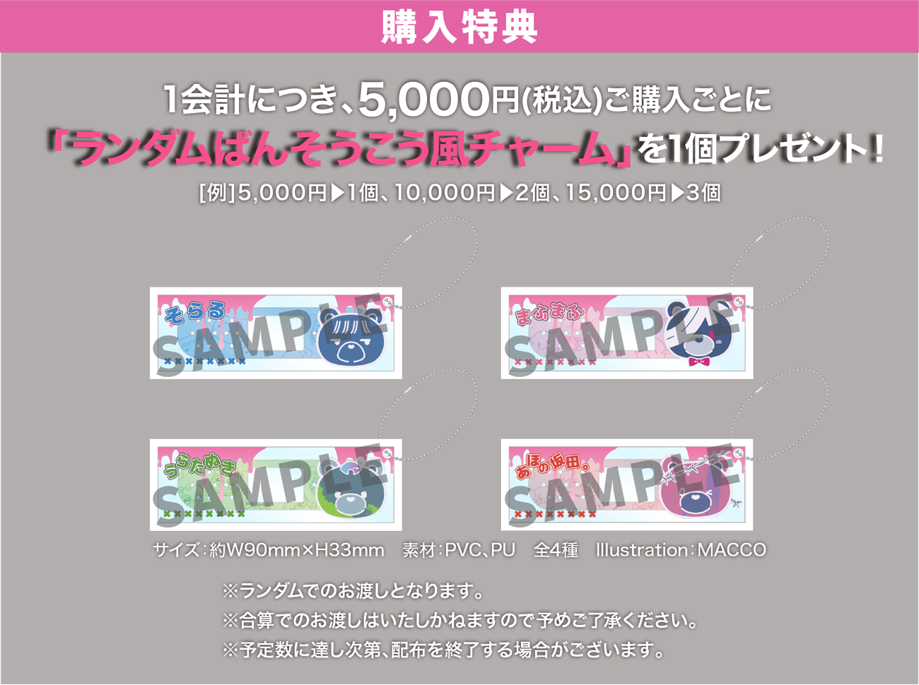 - ●お1人様1会計1アイテム3個まで、缶バッジくじは40個までとさせていただきます。