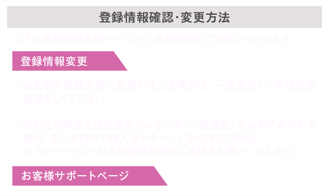 チケットのお申込みをされる際、お名前やご住所など、正しい情報で登録されているかを必ずご確認ください。